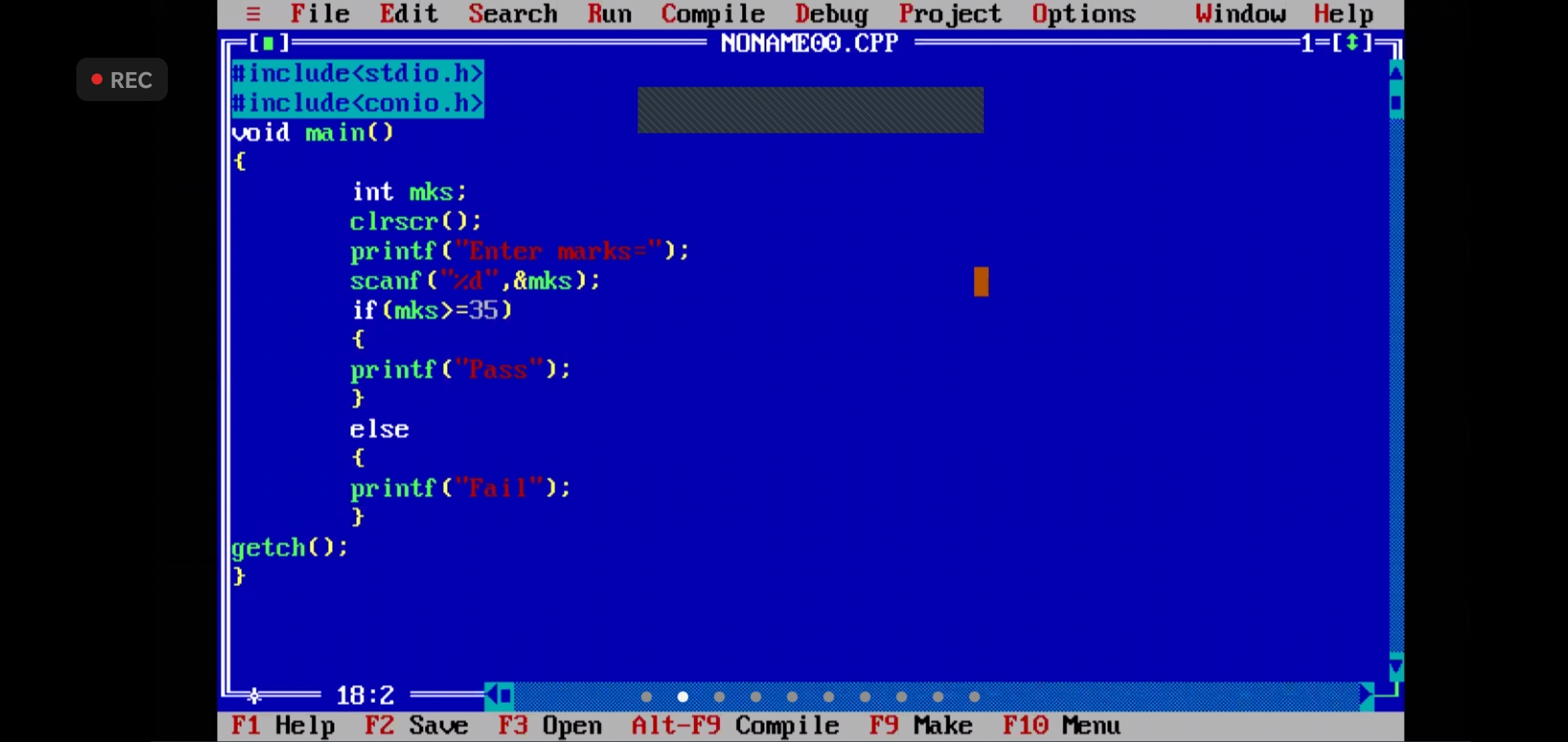 #include<stdio.h> #include<conio.h> void main() { float per; clrscr() printf("Enter the percentage"); scanf("%f",&per); if (per>=60); printf("distinction") else if (per