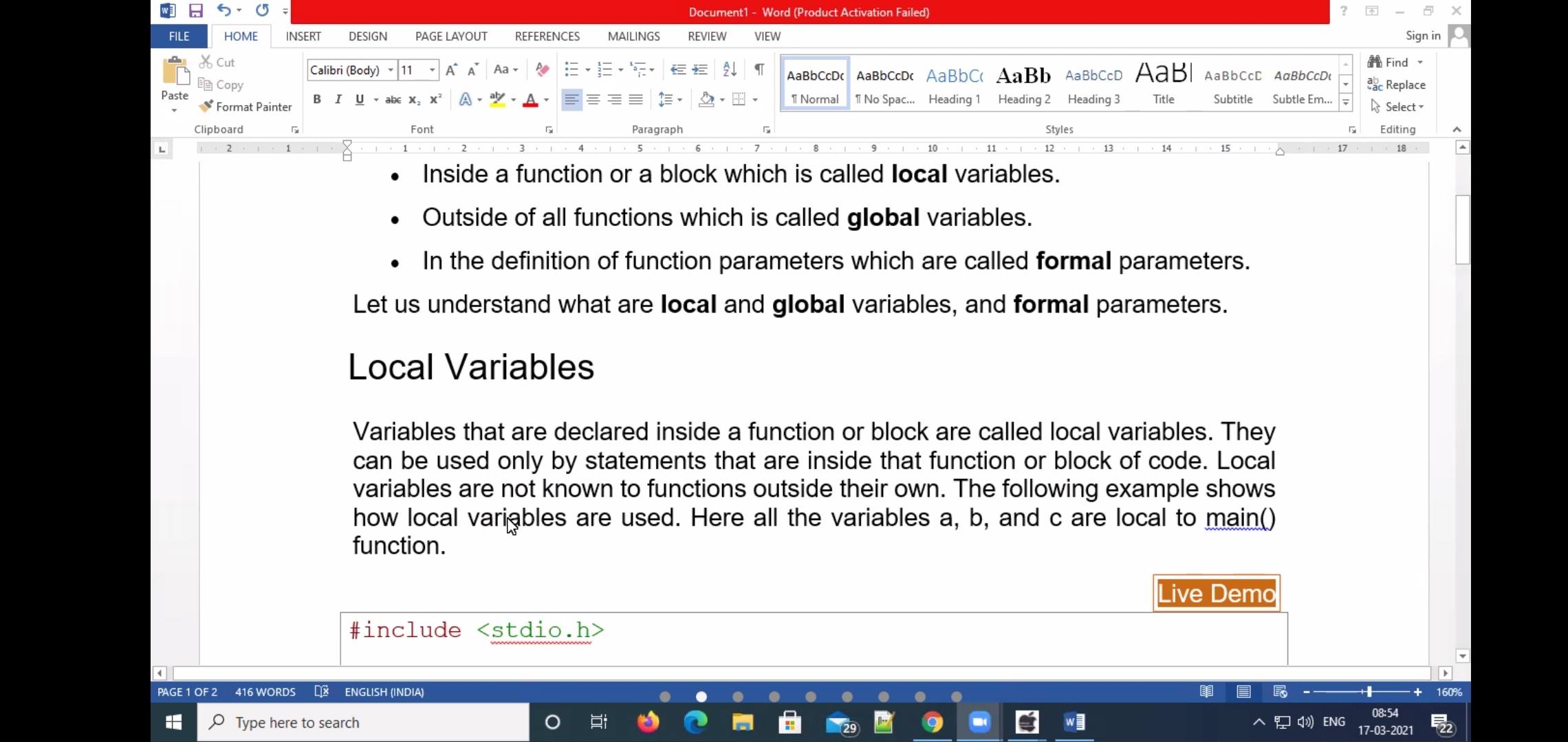 The C library function int putchar(int char) writes a character (an unsigned char) specified by the argument char to stdout.