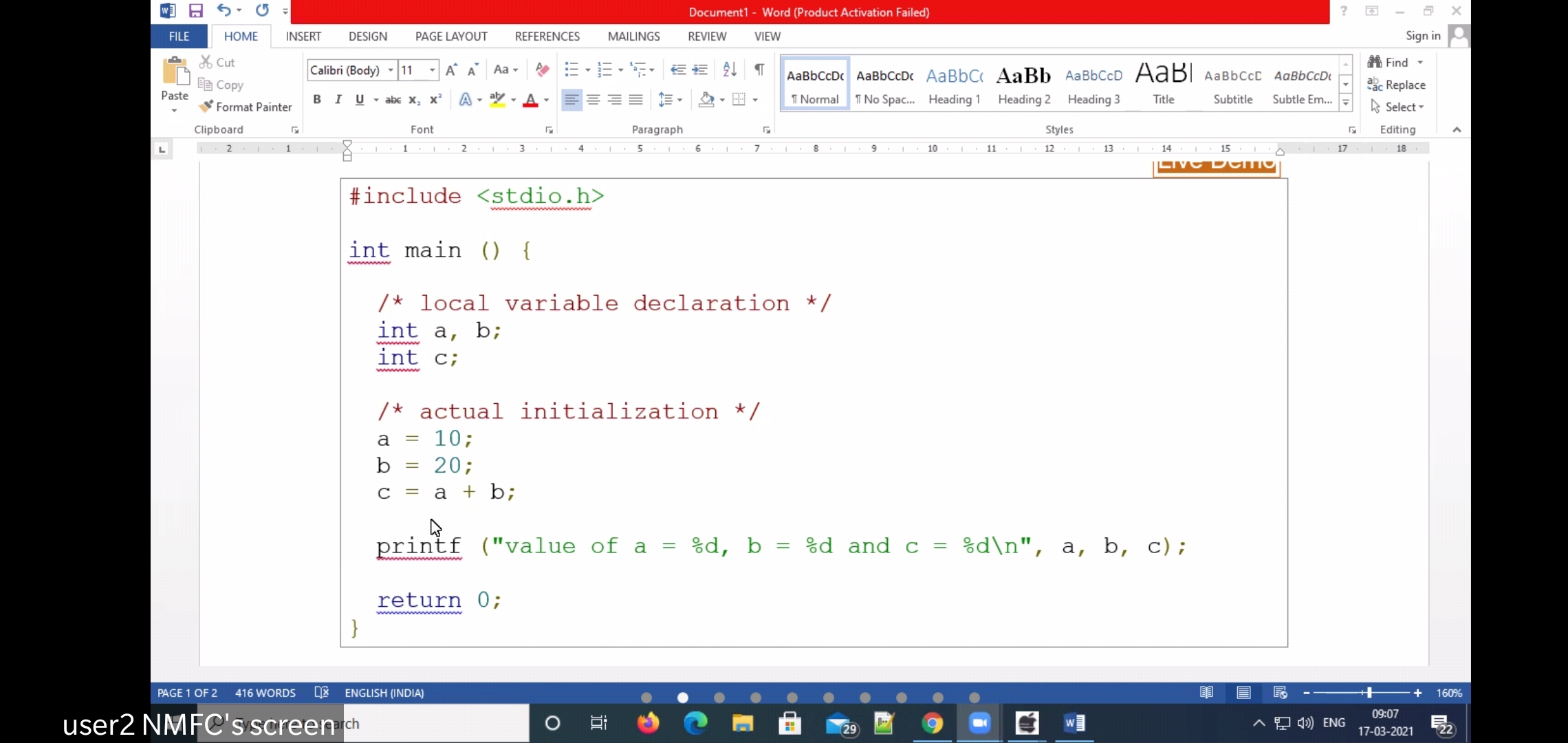 Write a program to print addition of any 5 numbers using array