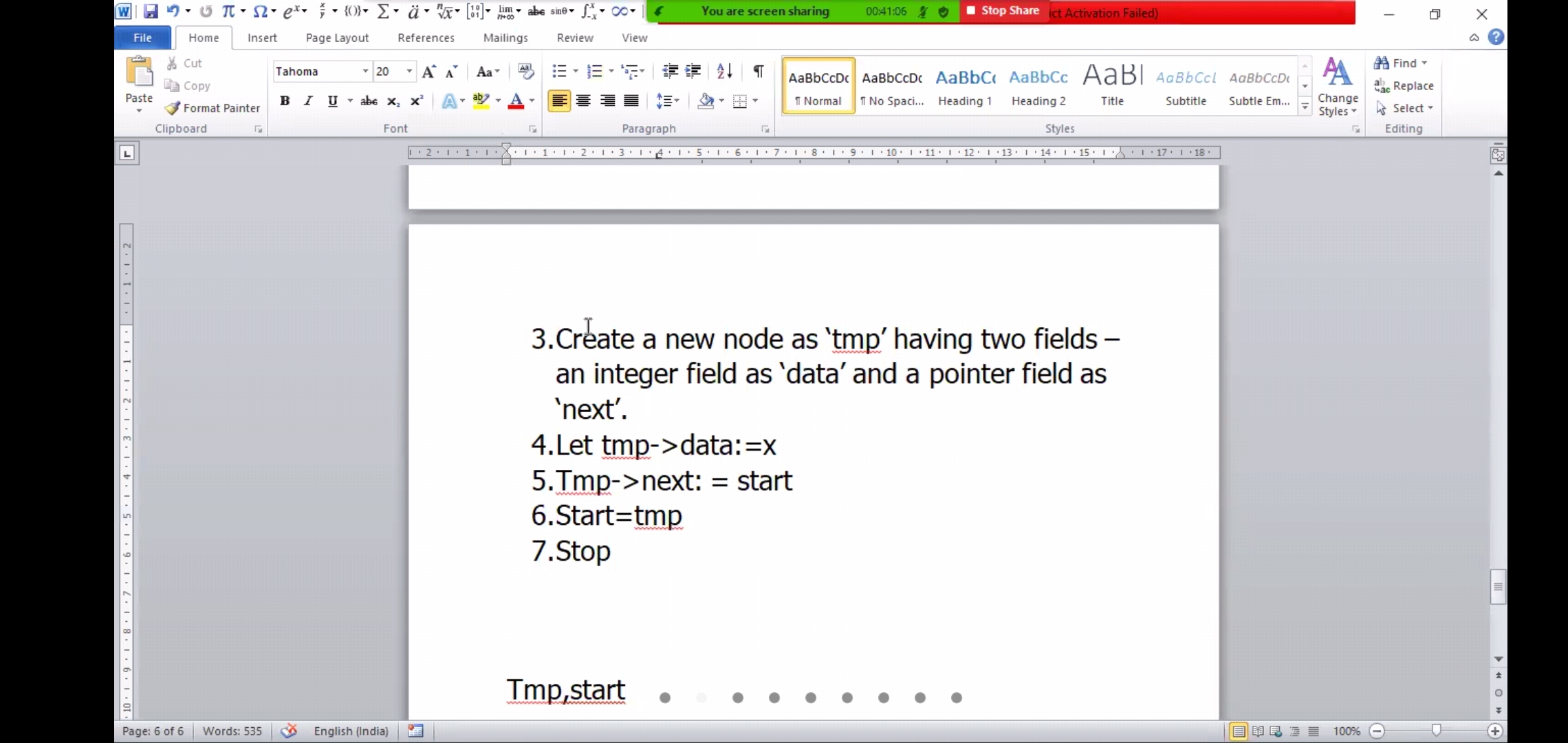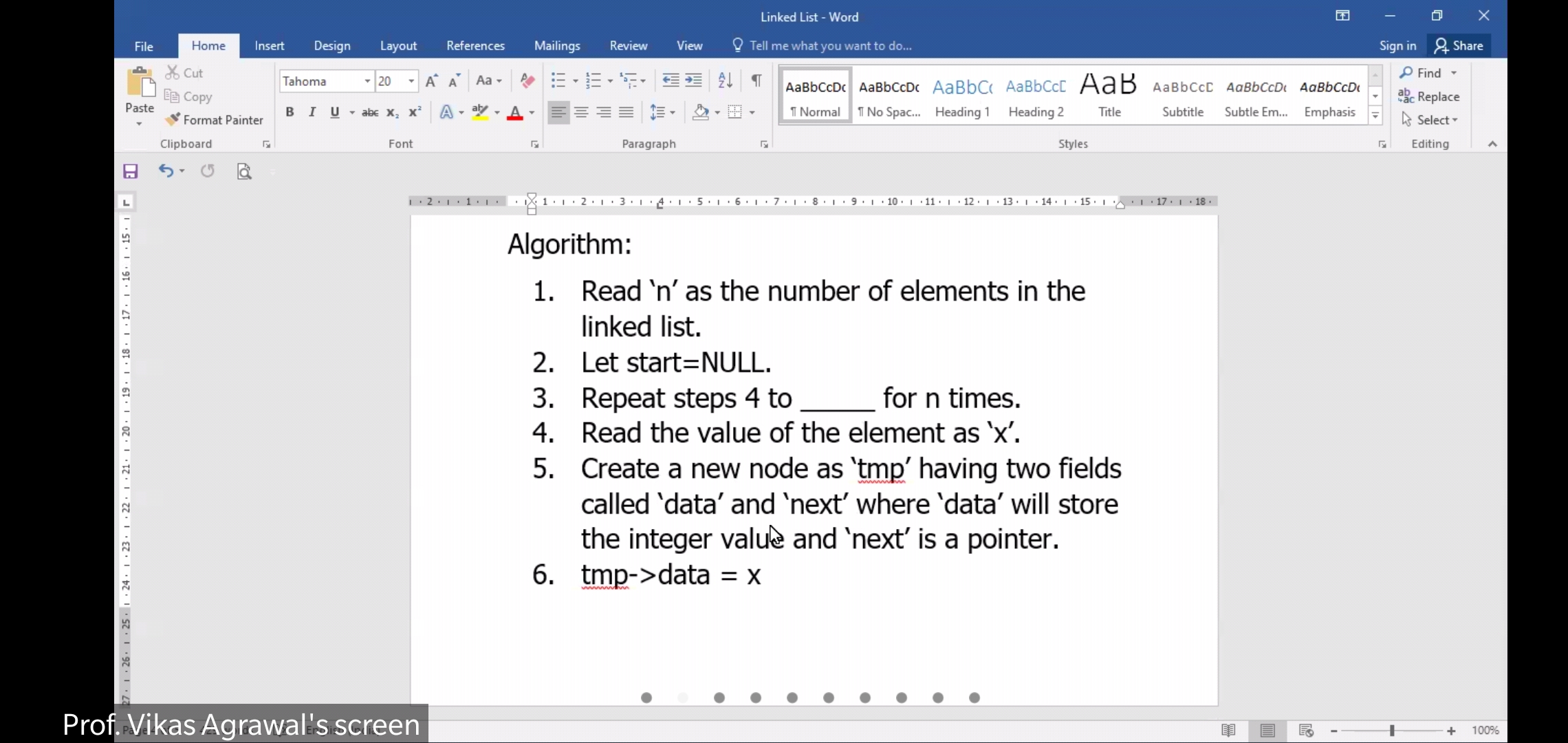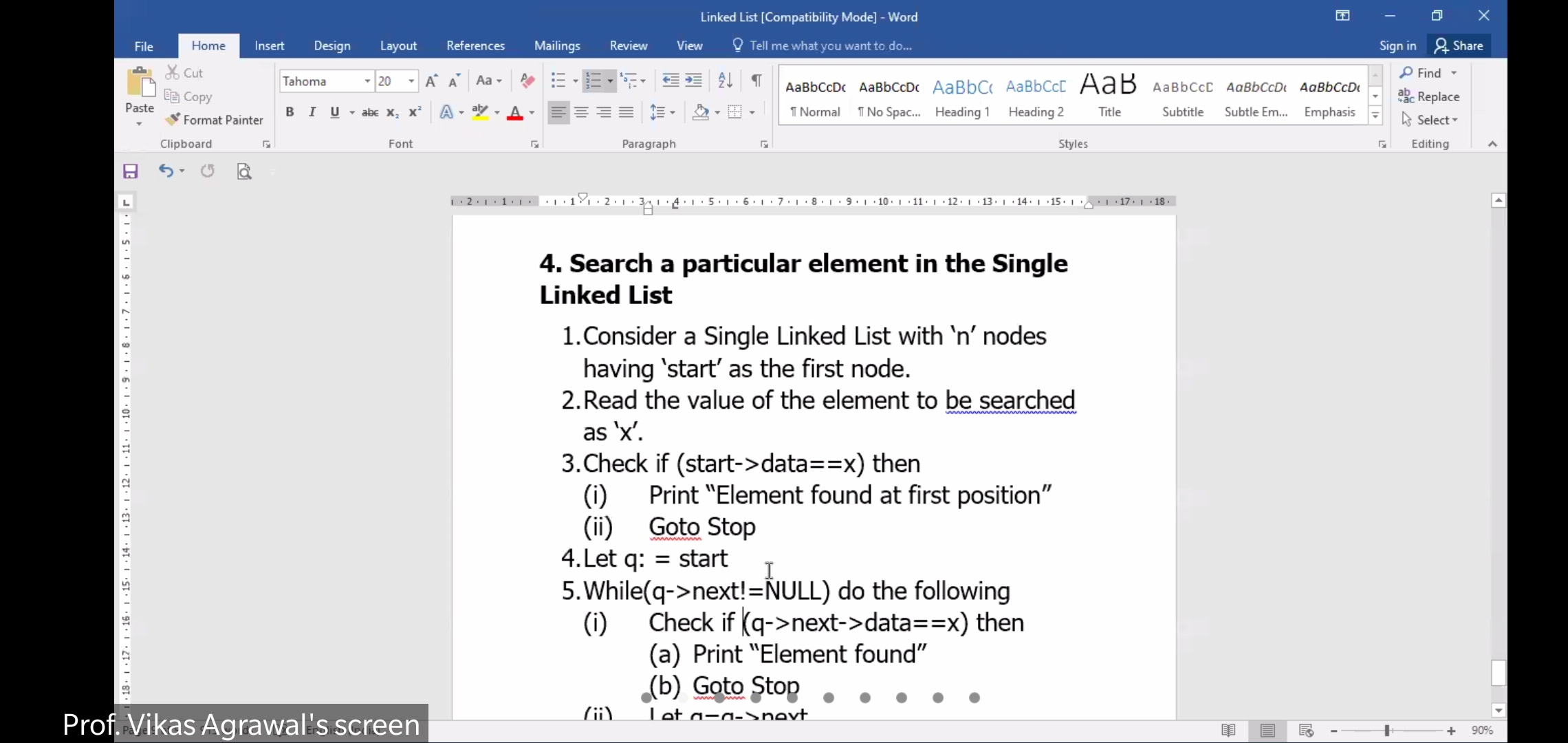In a SLL, each element points to its next element. The last element points to a NULL pointer. Each element consists of two fields - data and link. Hence each element is called as a node.