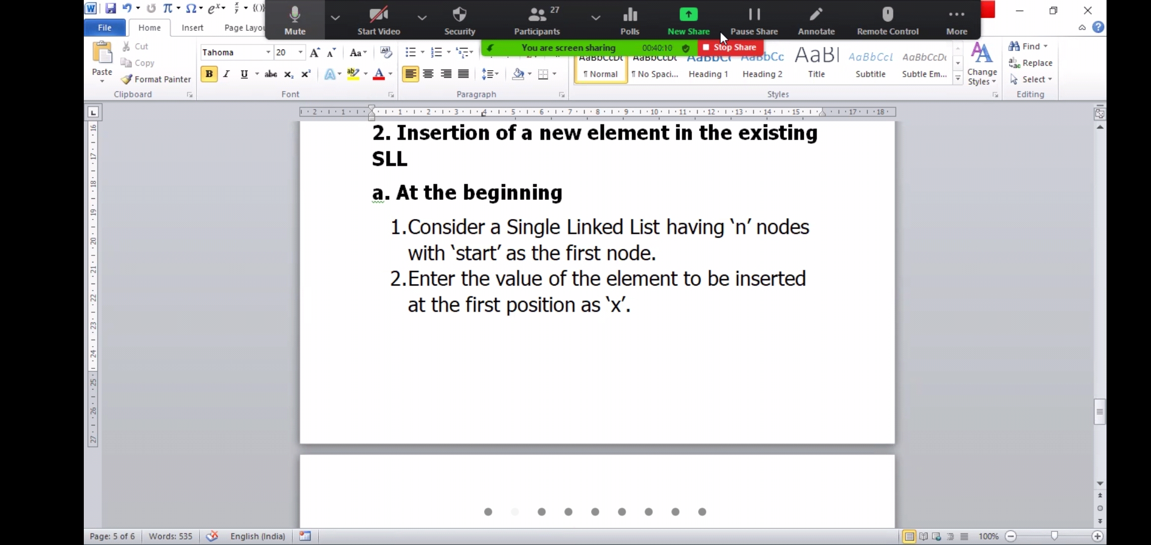 The first node is indicated by a pointer called "start". SLL allows traversal only in forward direction .
