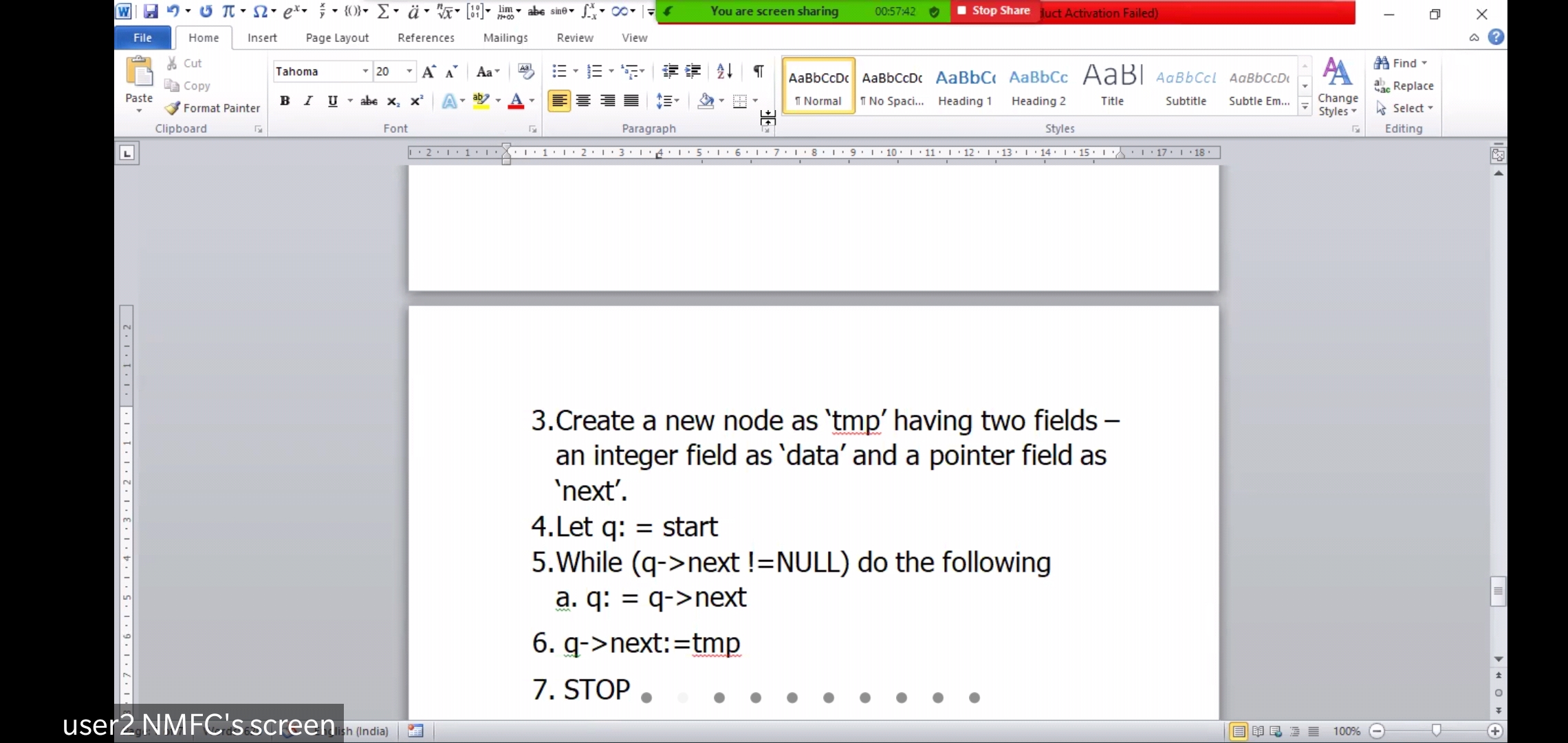 NULL pointer comes into existence only if there are zero elements in the CLL. In a CLL, the last element is the reference pointer for the programmer.