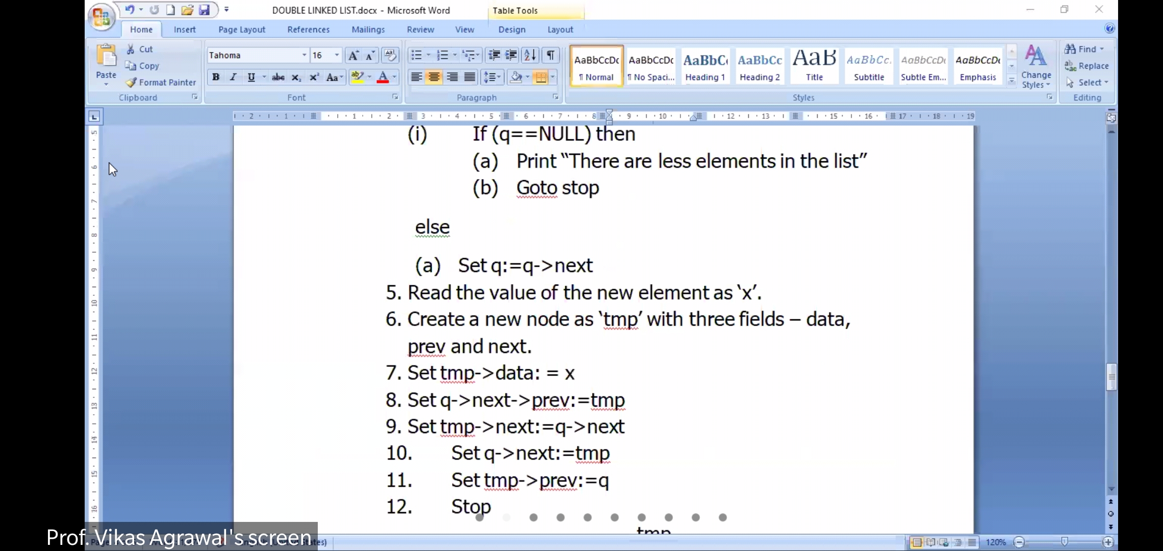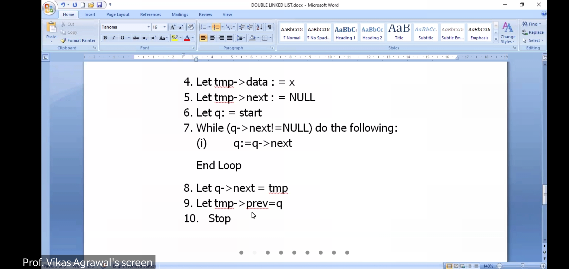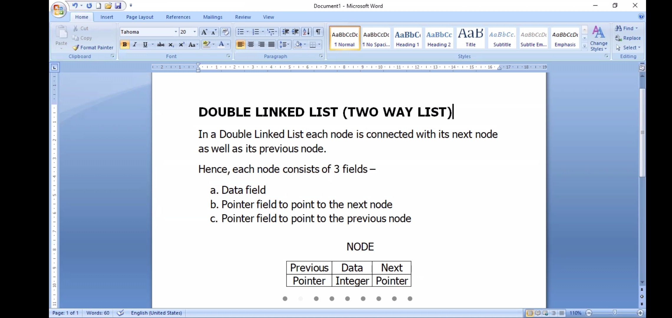 In a DLL, each node points towards 2 nodes, one on the forward side and other on the reverse side.