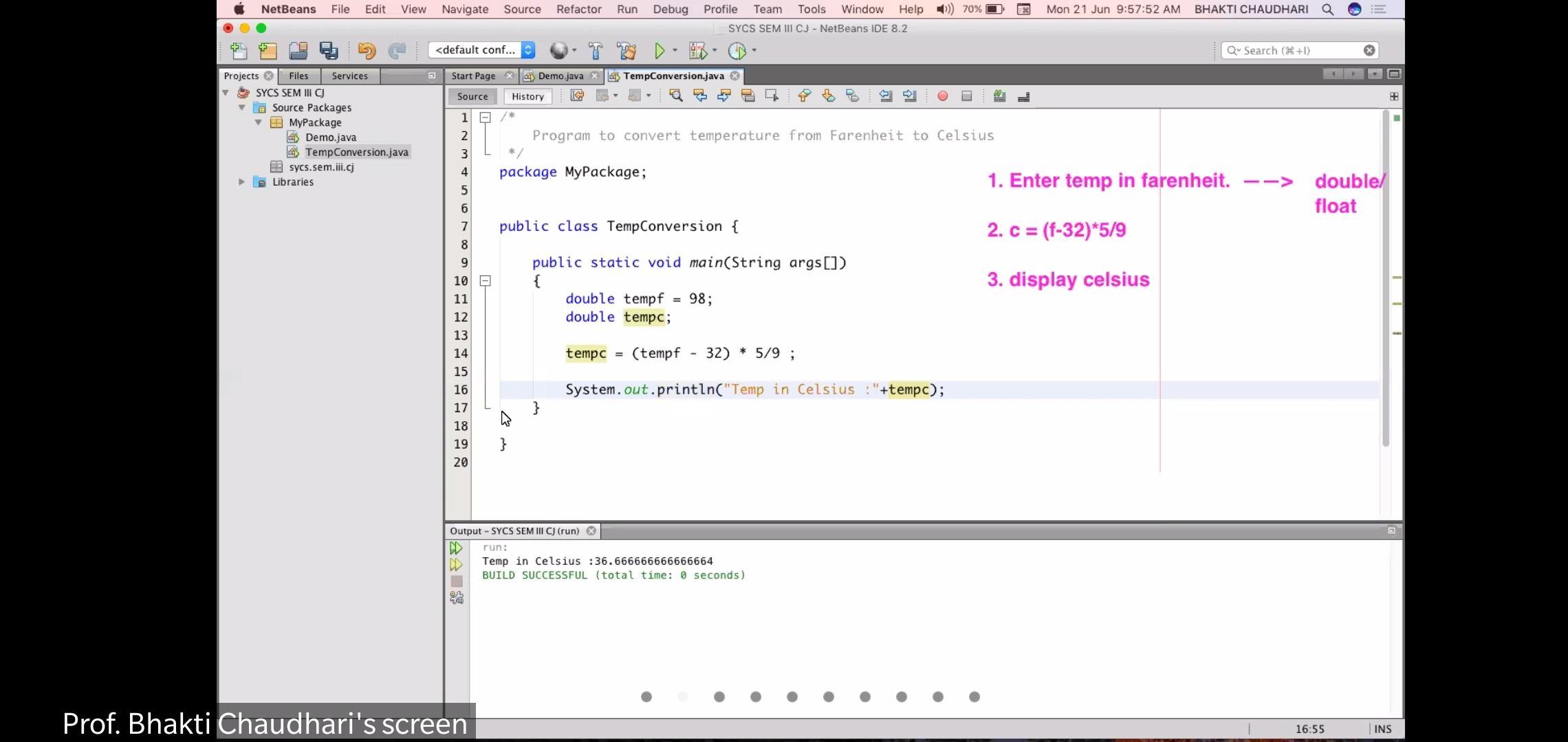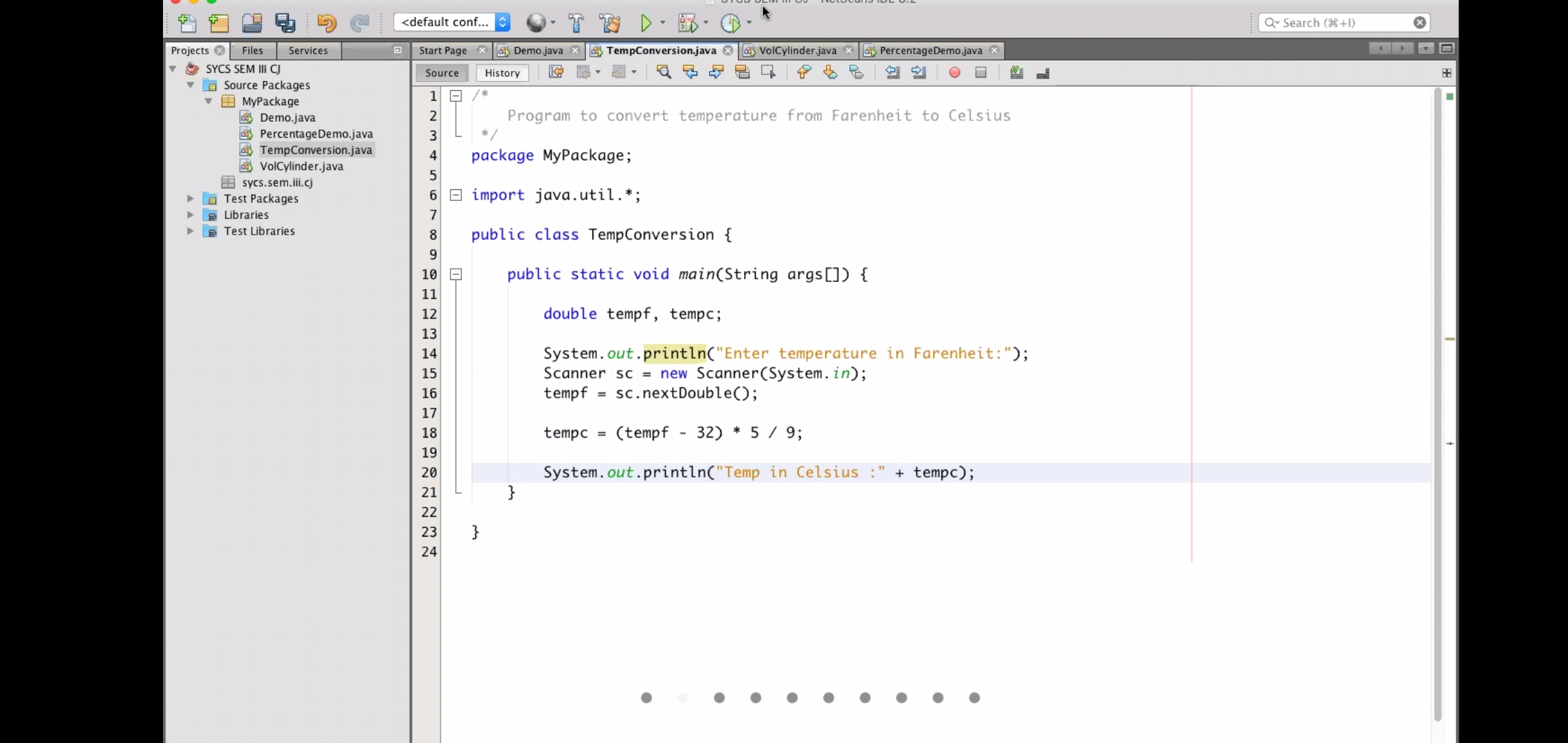 Program to convert Fahrenheit into Celsius