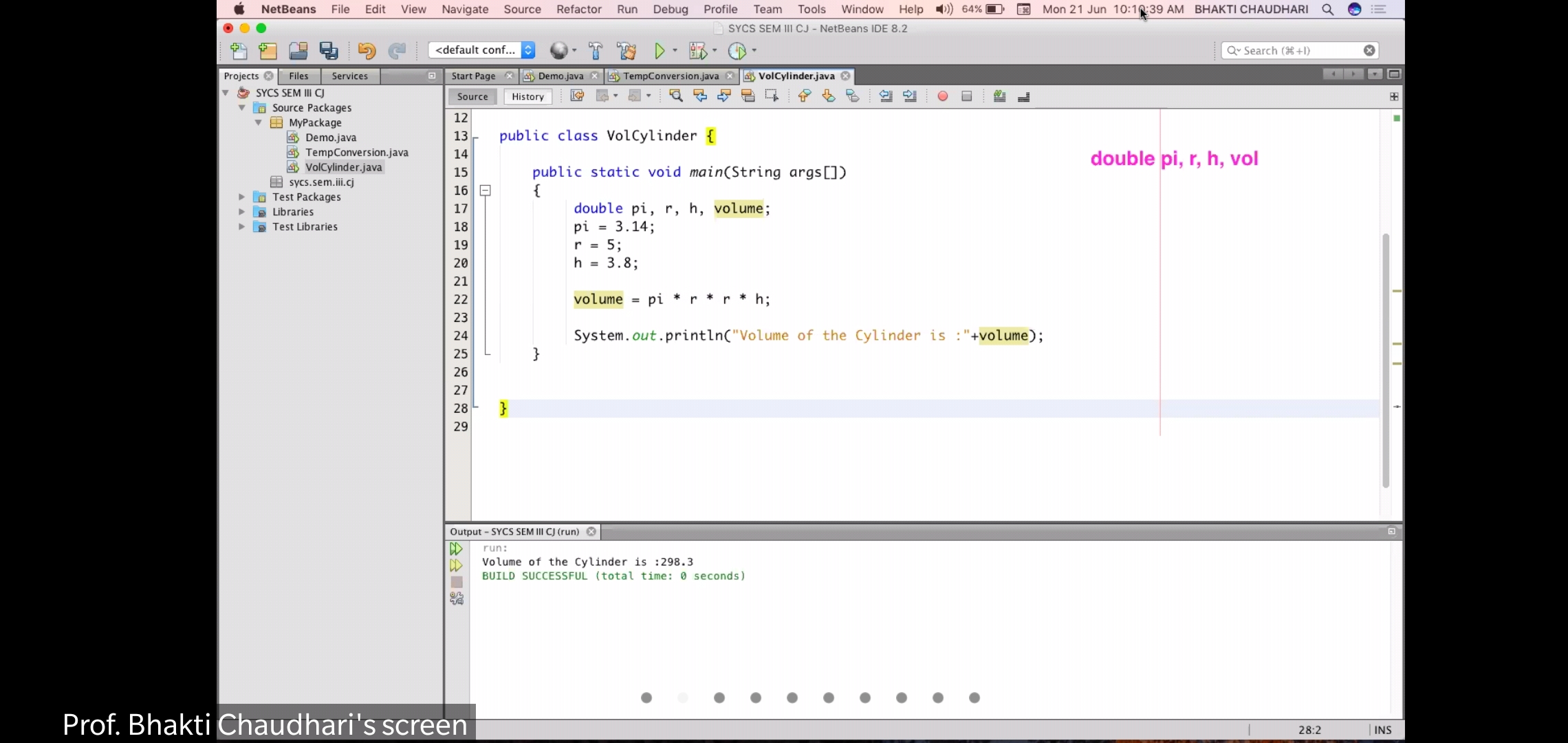 Write a program Volume of cylinder