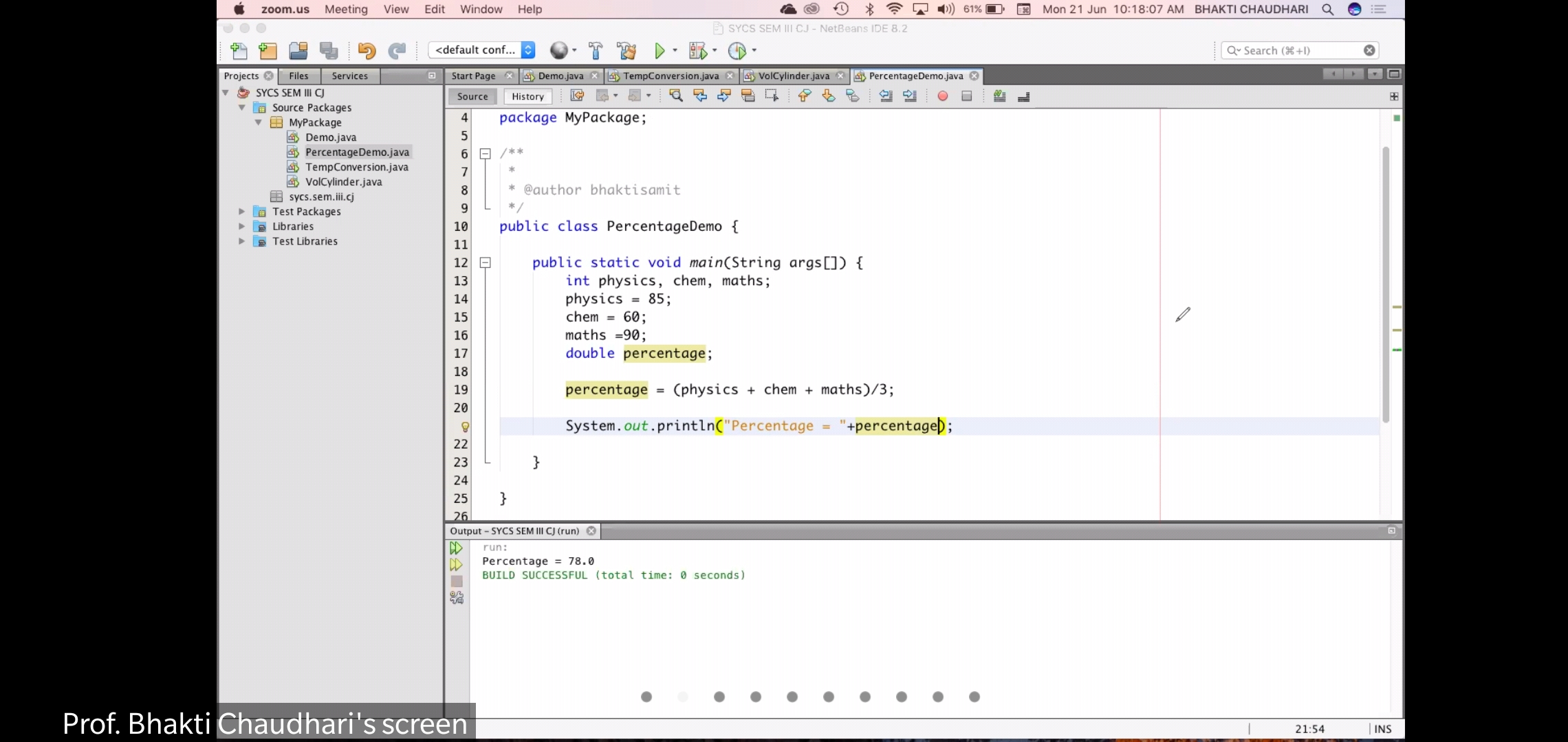 Write program to find percentage of 3 subject