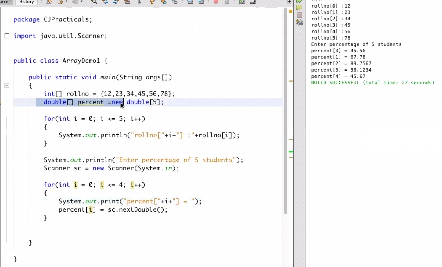 Demo to accept 1D array and print the array